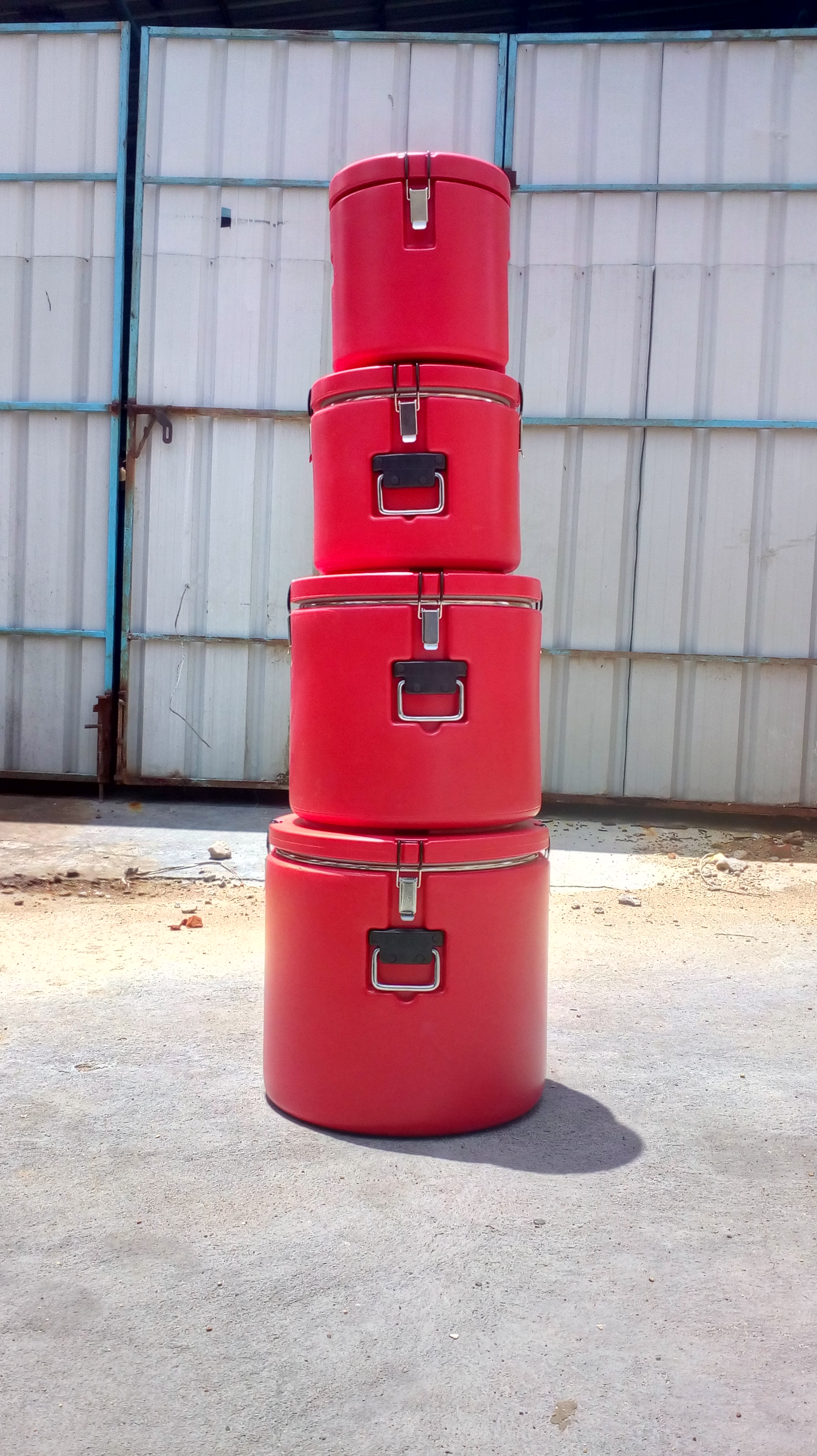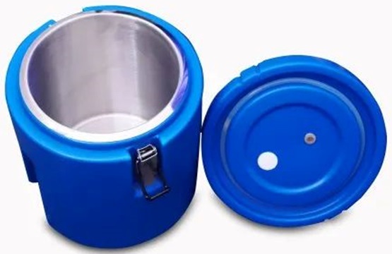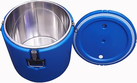 Capacity Variants: 50 Ltrs Inner Dimensions / Diameter: 39cm x 40cm, Outer Dimensions / Diameter: 46cm x 45cm, Height: 45cm, Weight of the Container: Container: 8.2kg Temperature Drop/Hour: Each hour drops 4 degrees. Color Availability: Red, MOC Inside: 304 stainless steel MOC Outside: PE material, MOC Insulation: Polyurethane Insulation Thickness and Conductance: Insulated thickness 25mm, Inner and Outer Layer Connected Method: Foam injection