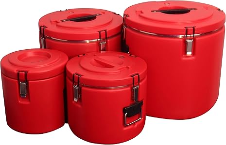 Capacity Variants: 15 Ltrs Inner Dimensions / Diameter: 24cm x 27.5cm, Outer Dimensions / Diameter: 33.5cm x 30cm Height: 29cm, Weight of the Container: 4.2kg Temperature Drop/Hour: Each hour drops 4 degrees. Color Availability: Red, MOC Inside: 304 stainless steel MOC Outside: PE material, MOC Insulation: Polyurethane Insulation Thickness and Conductance: Insulated thickness 25mm, Inner and Outer Layer Connected Method: Foam injection